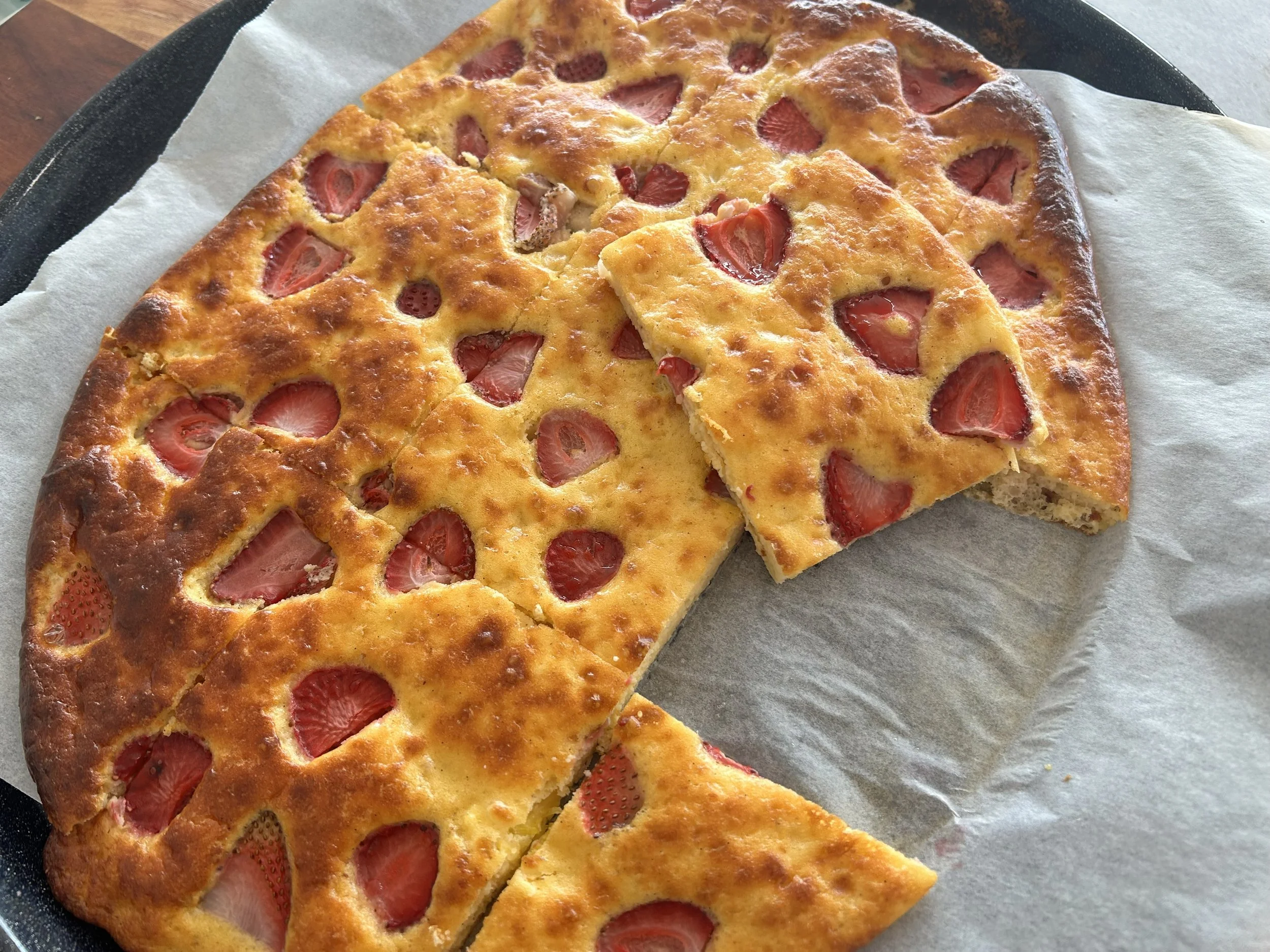 Use mixed frozen berries, or a mixture of stone fruits to top pan cake, such as nectarines, peaches and plums.